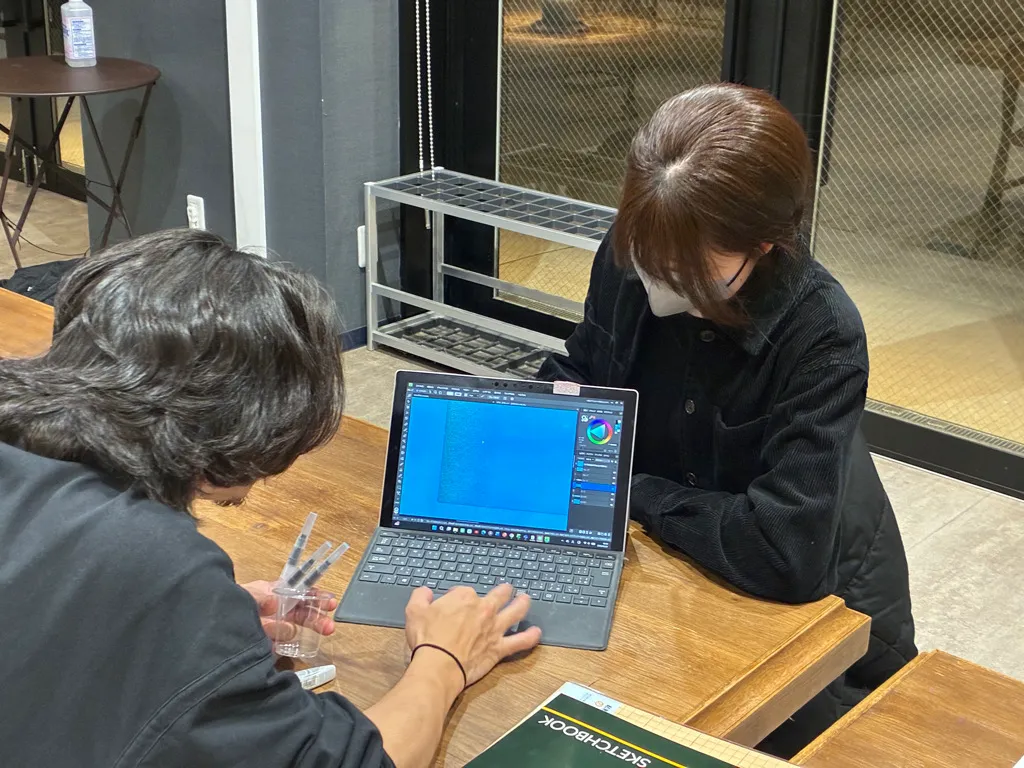 プロのデザイナーから、デザインを実践的に学びます。他チームと連携し、イベントのロゴやSNSバナー、さらには南部市場を彩る常設展示の企画・制作まで挑戦できます。